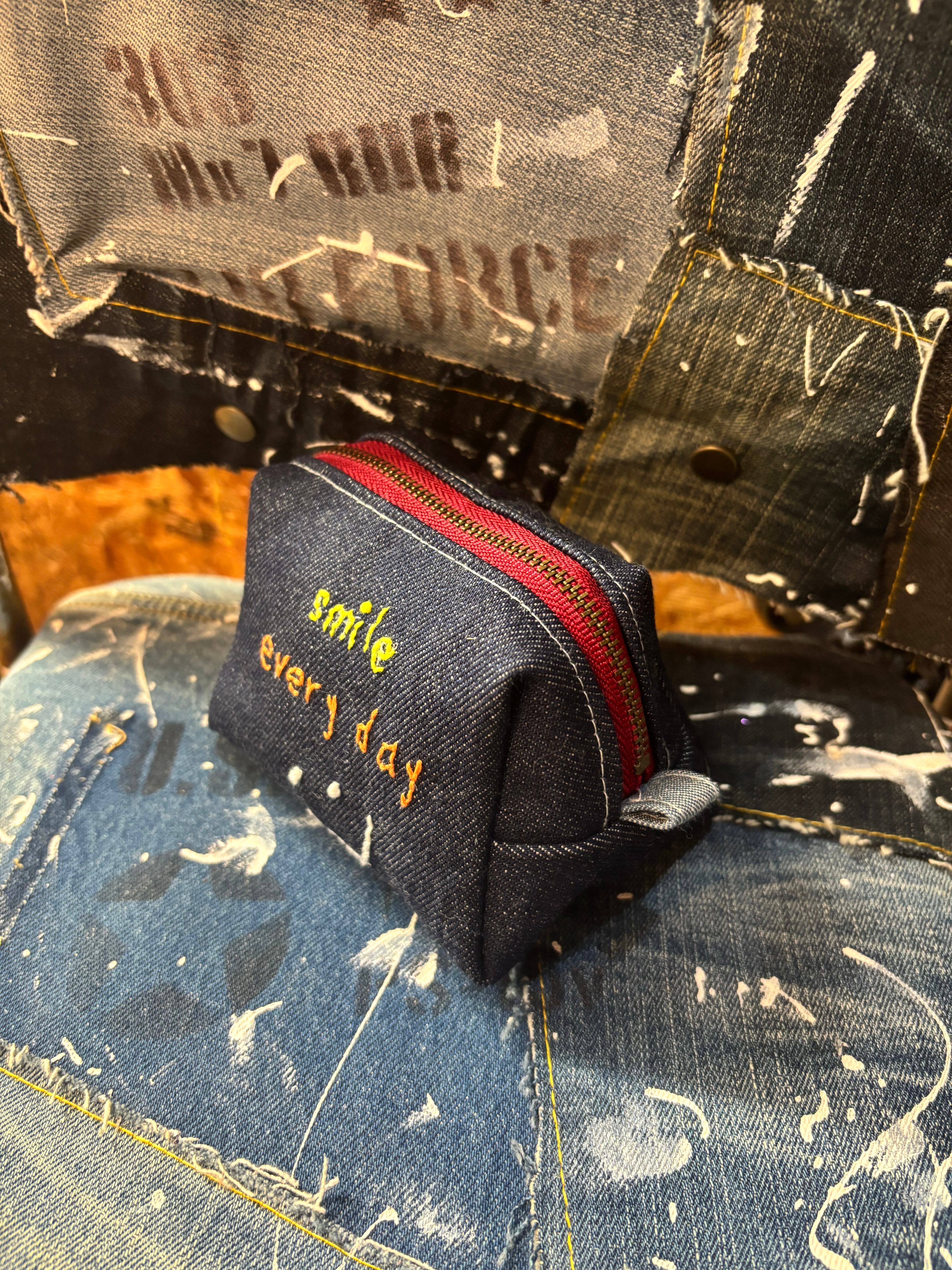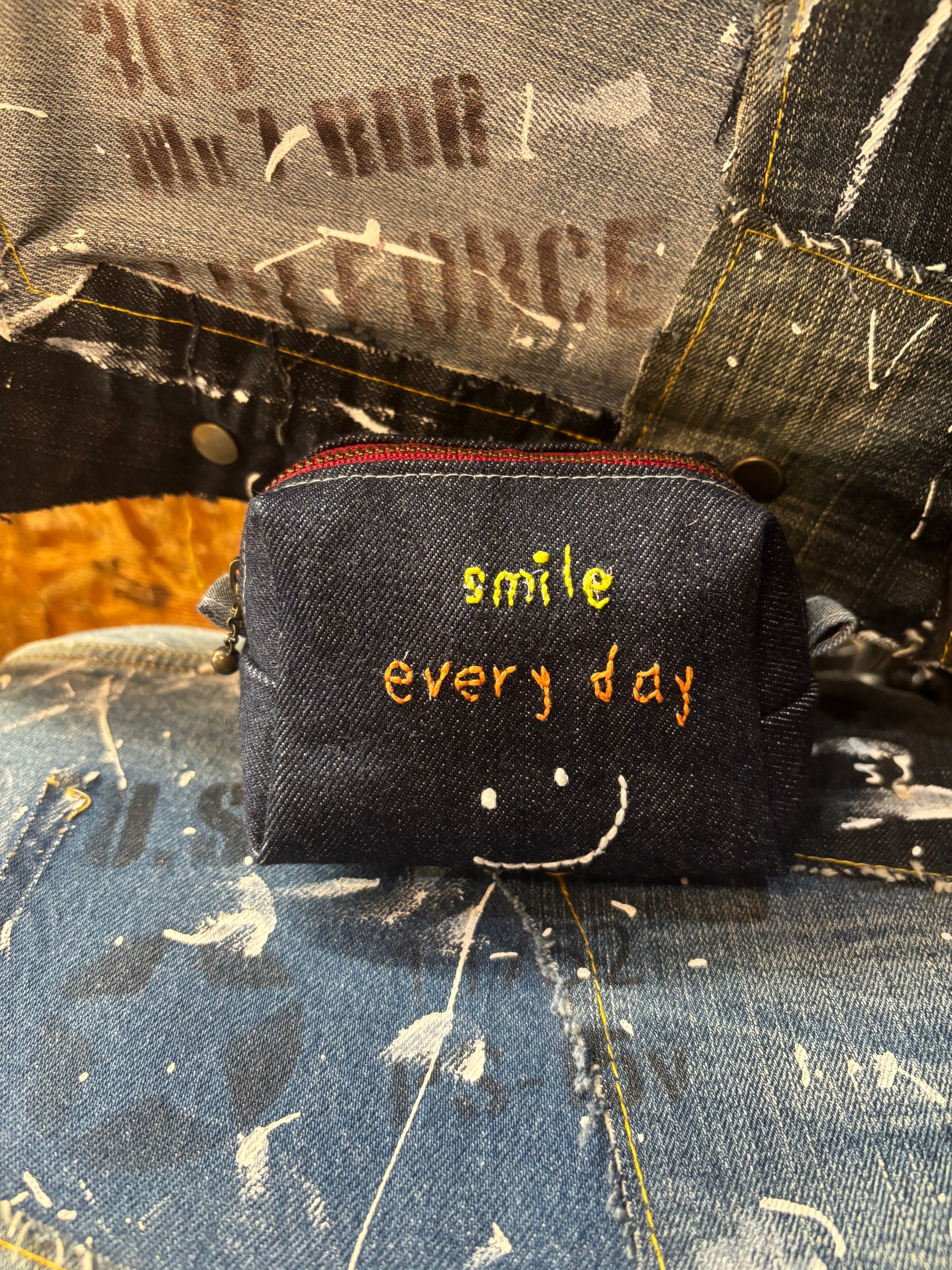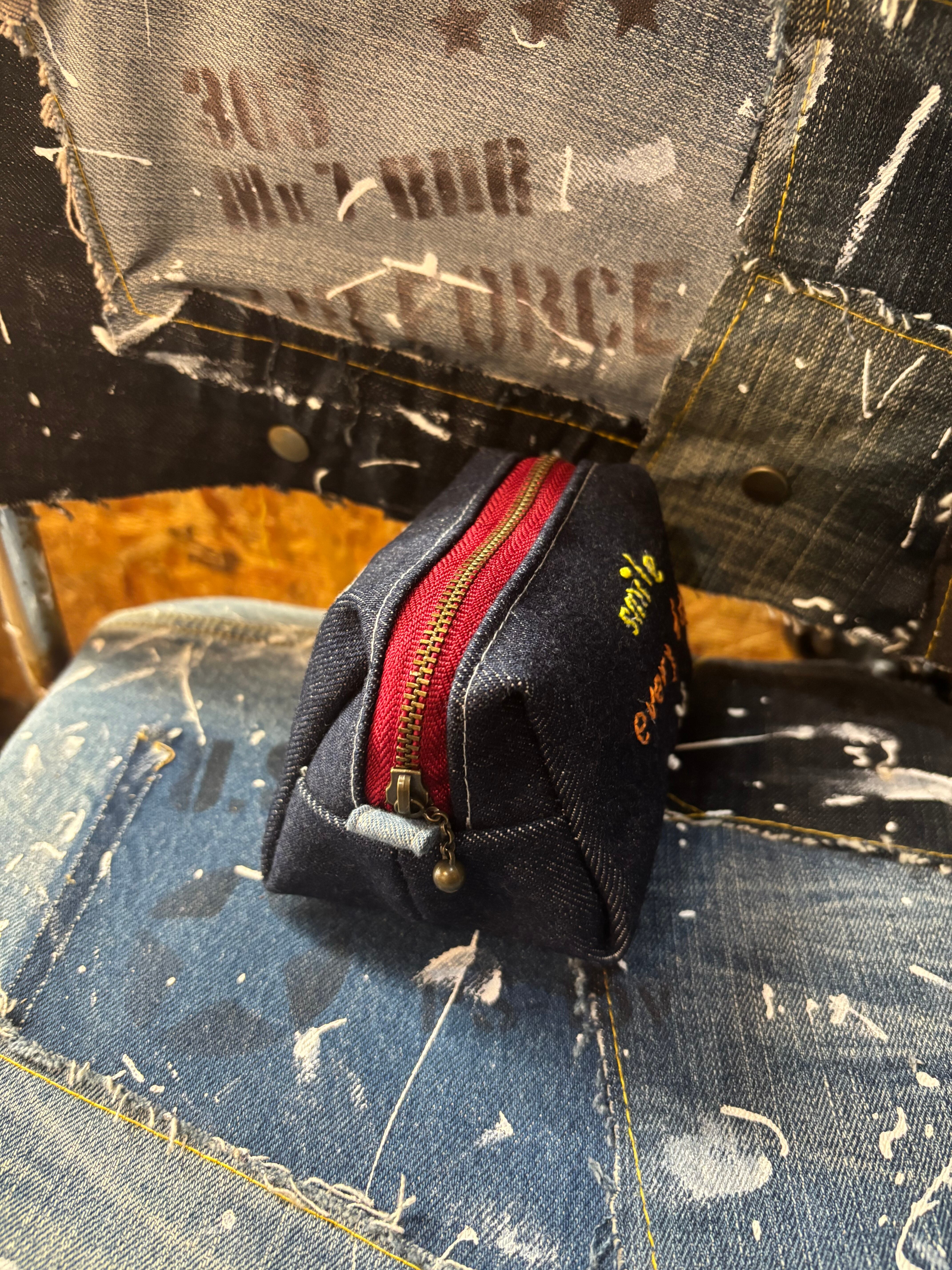 デニム刺繍ポーチ 1点物