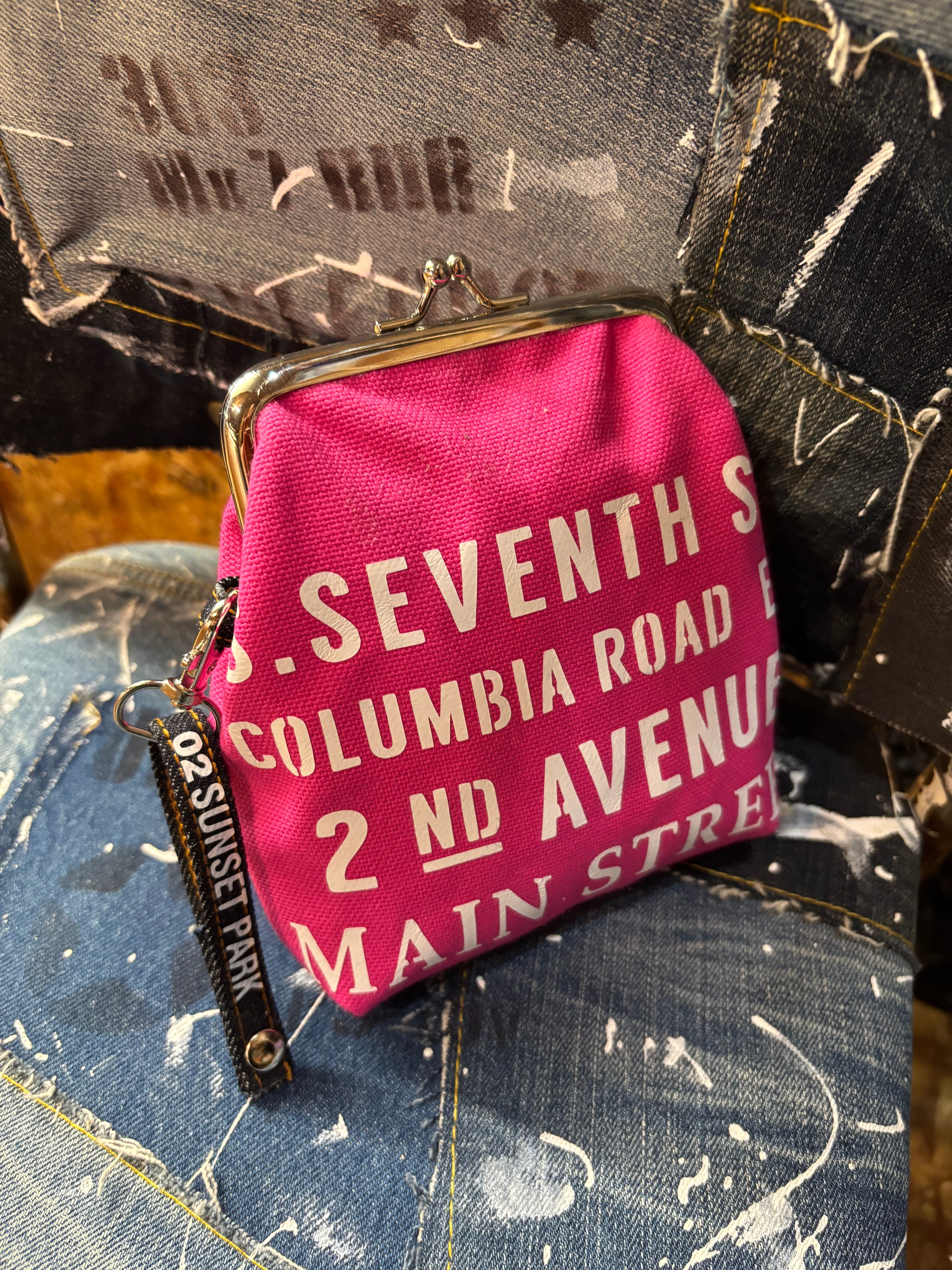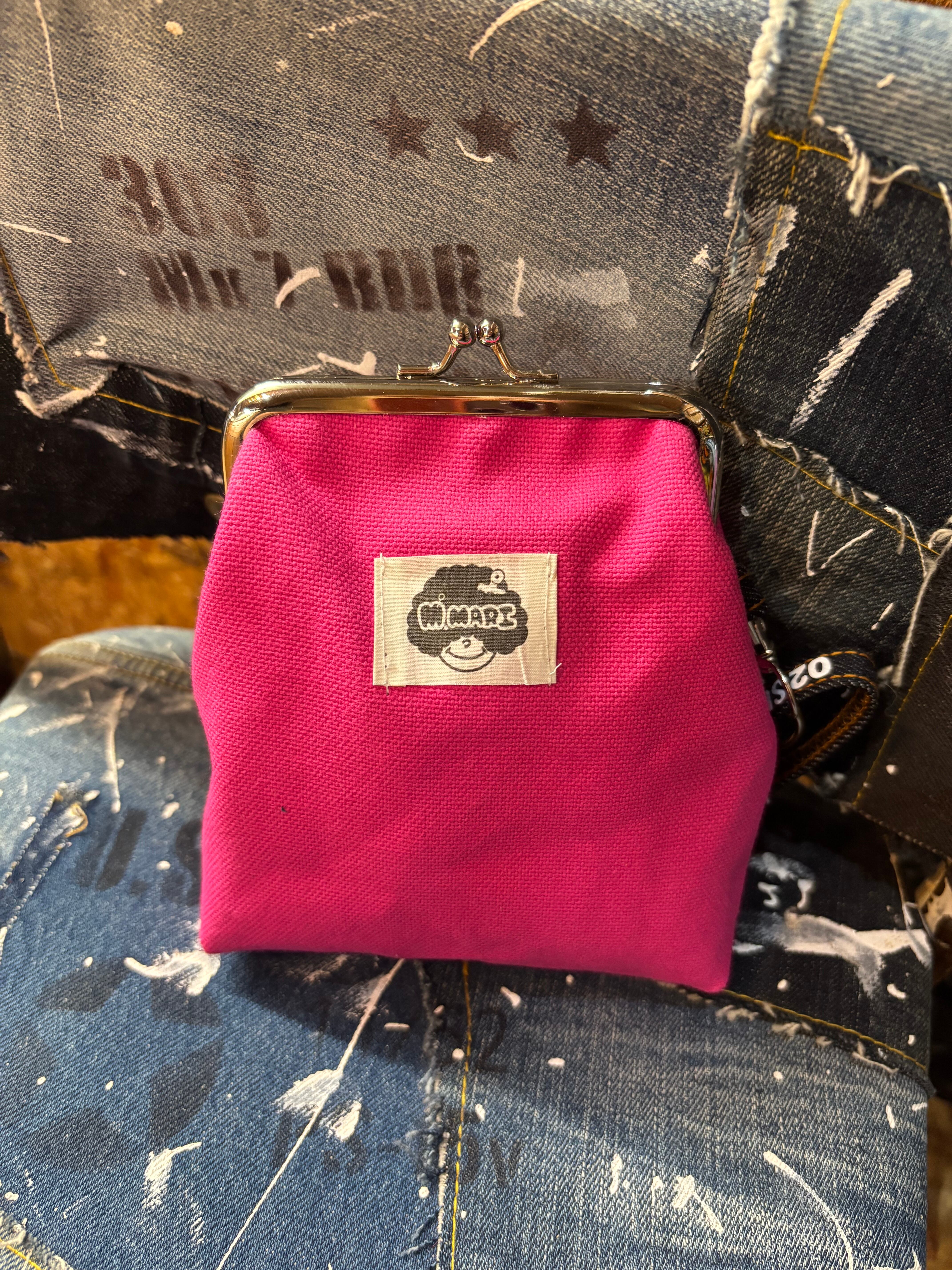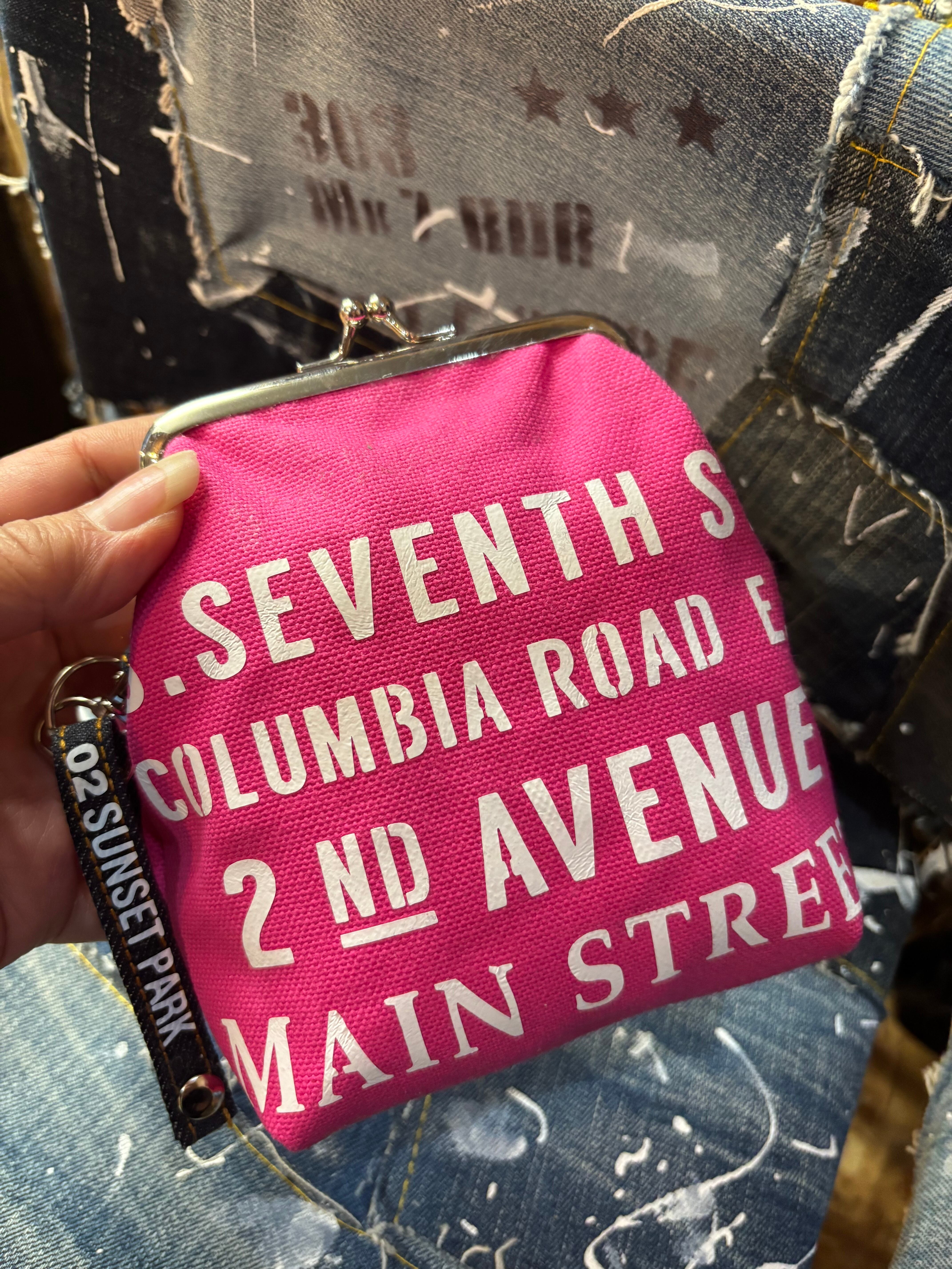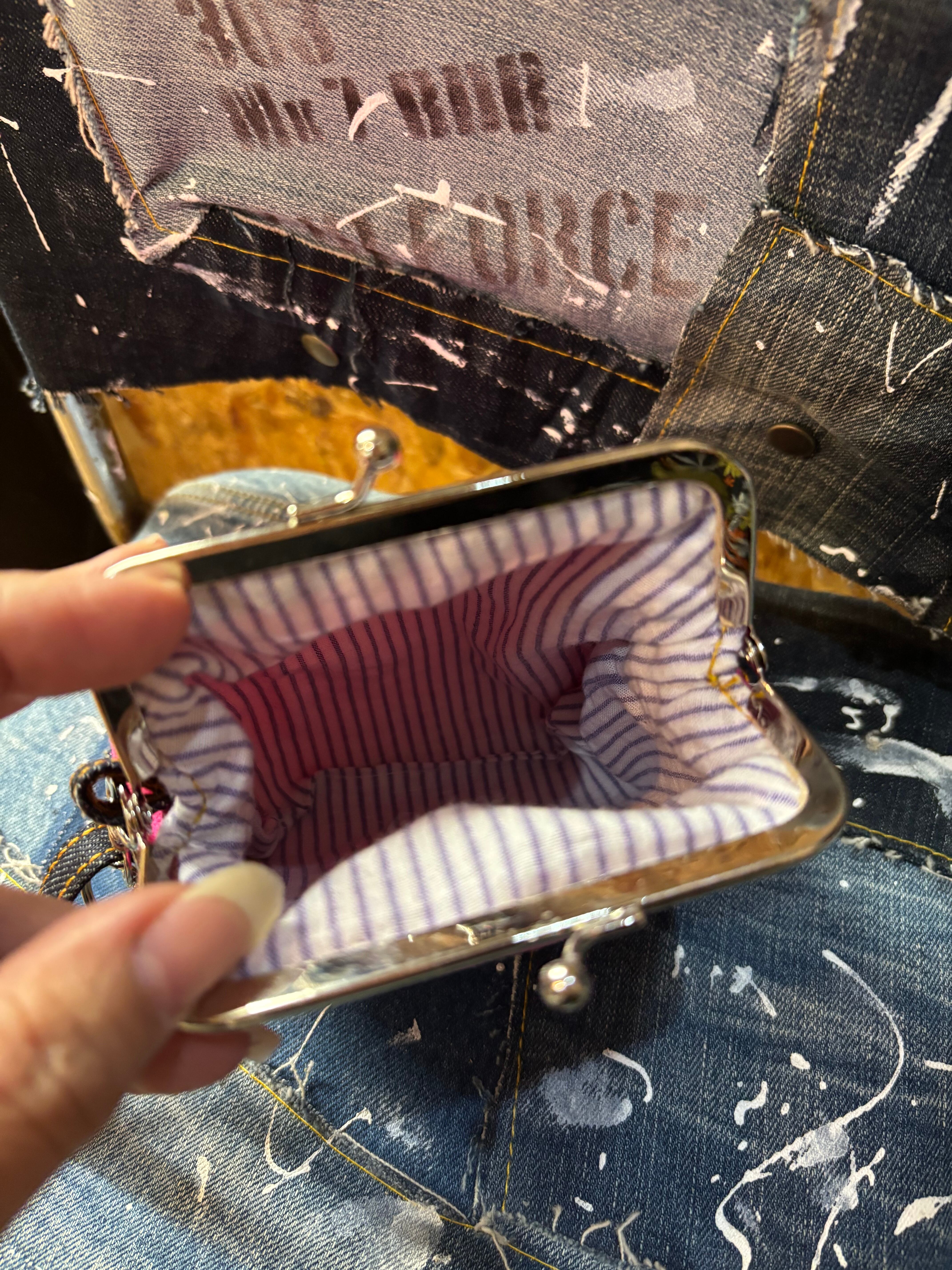 帆布がま口ポーチ 縦長 デニムキーホルダー付き