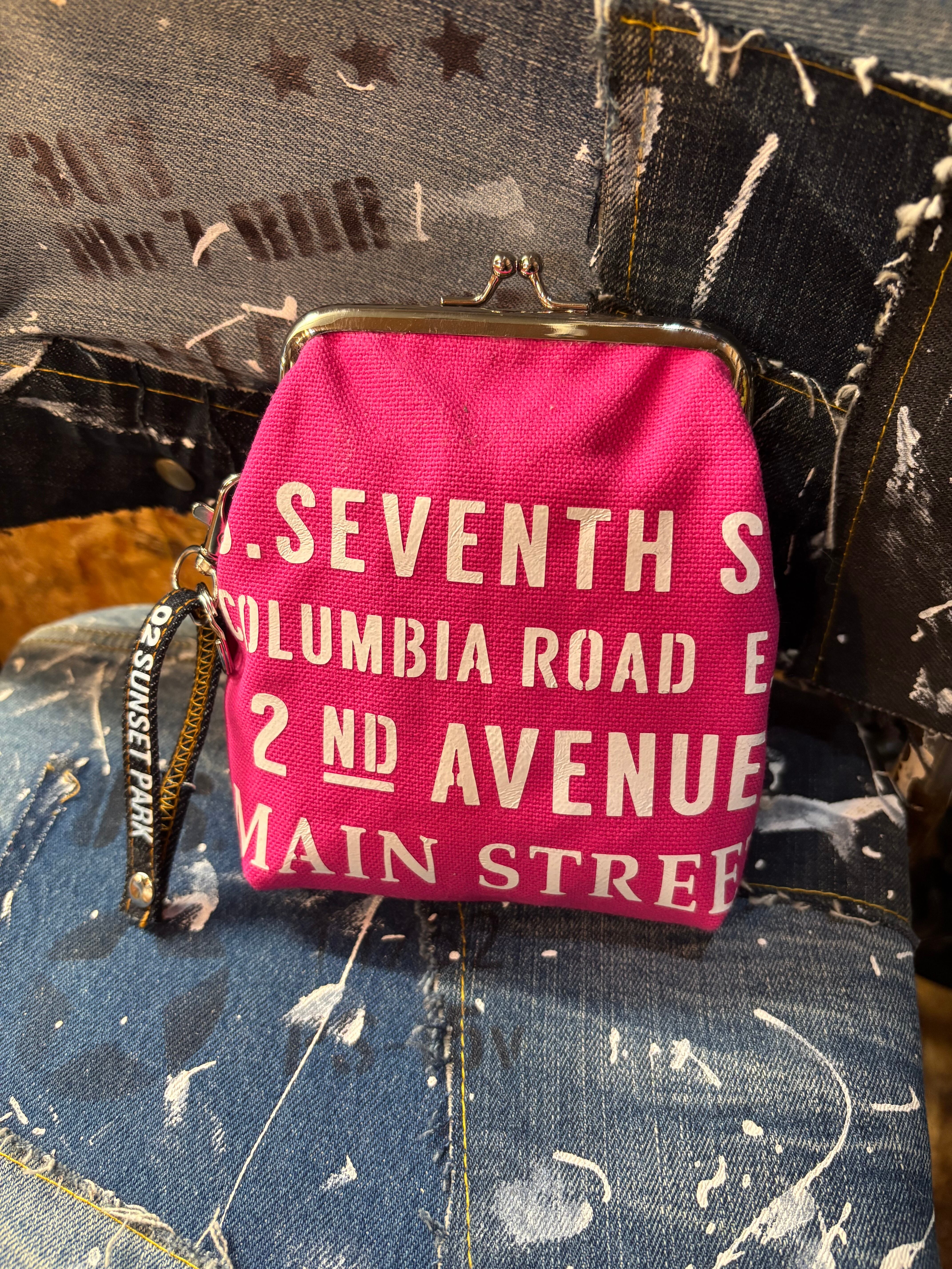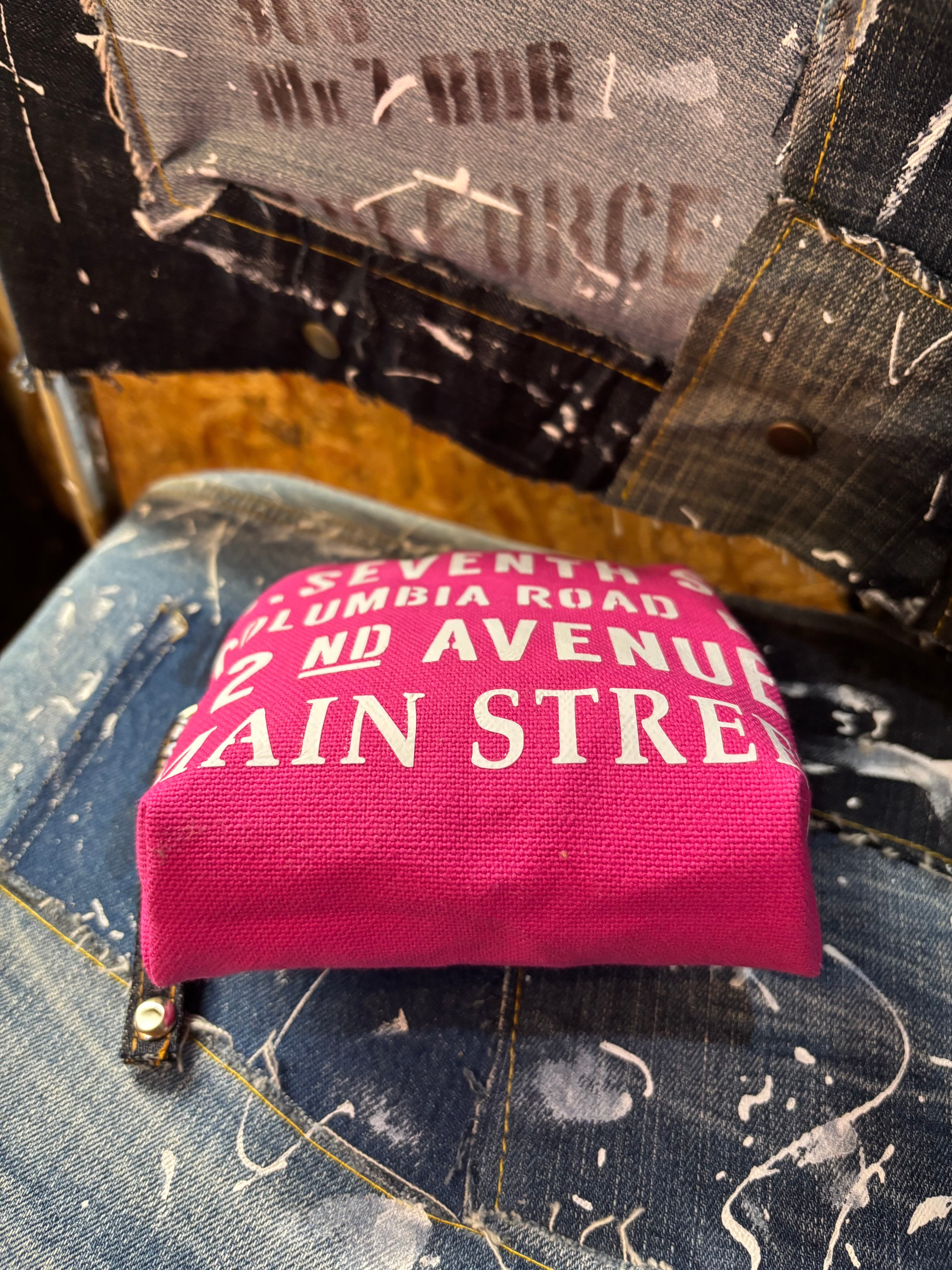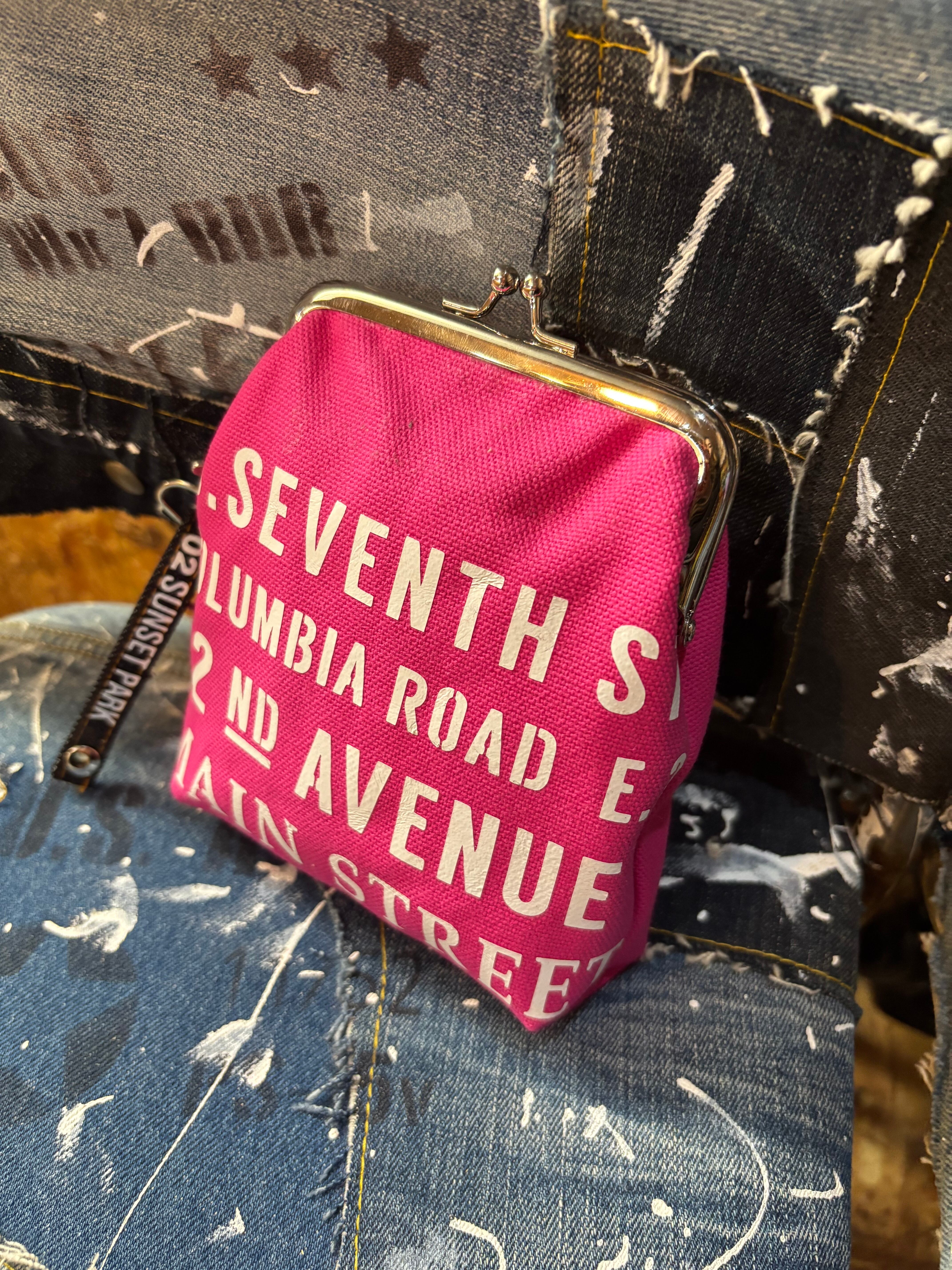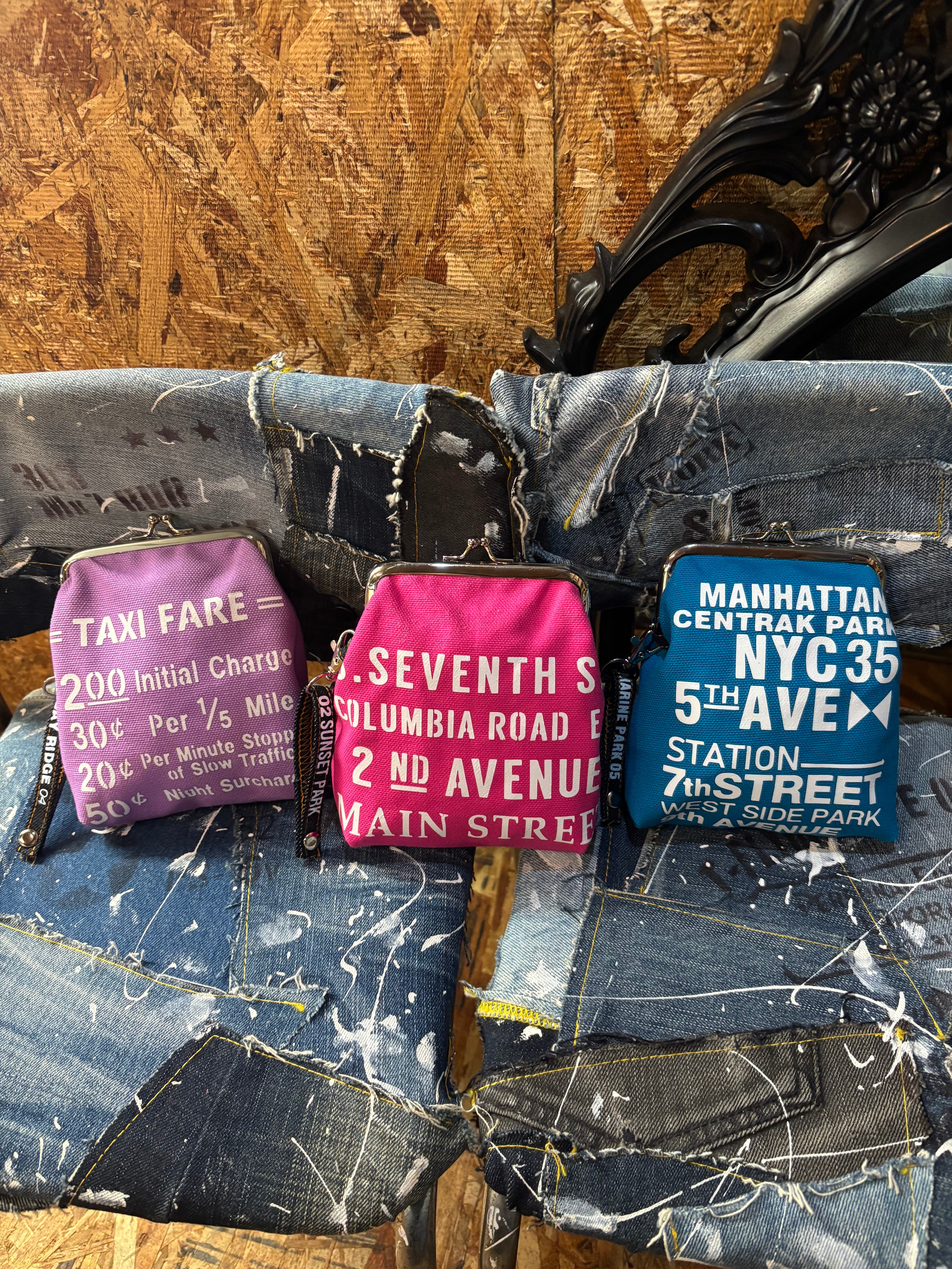 帆布がま口ポーチ 縦長 デニムキーホルダー付き
