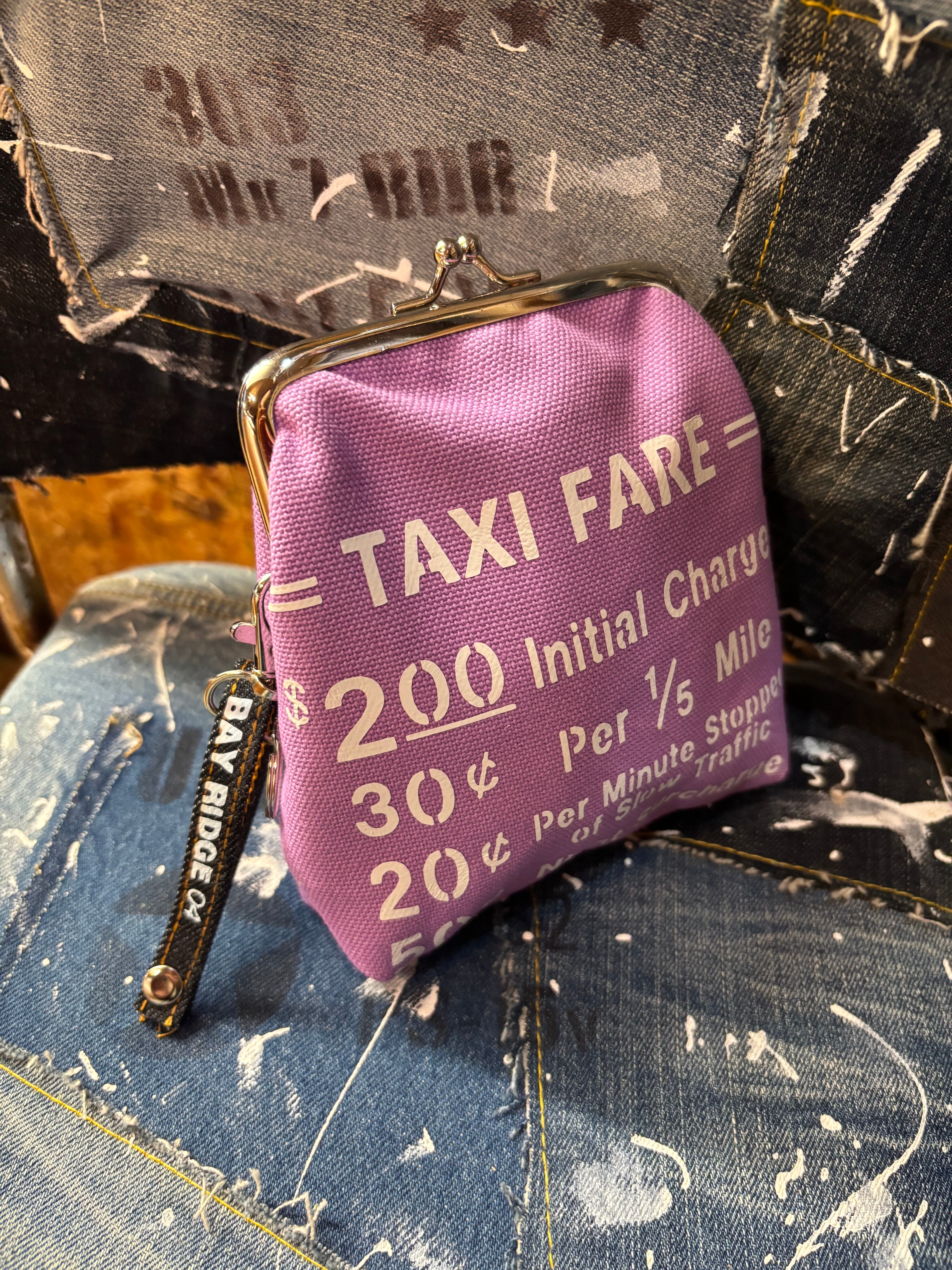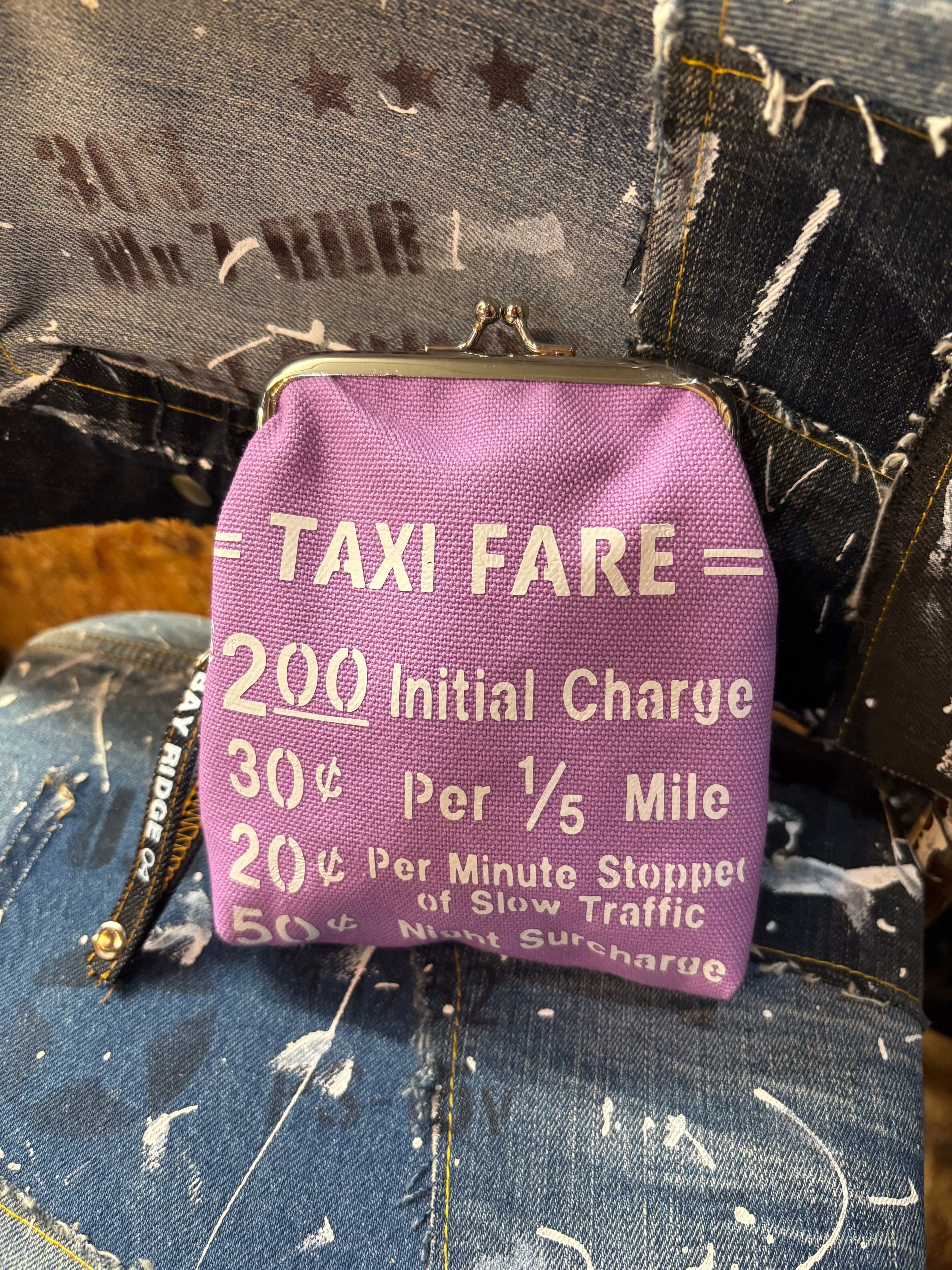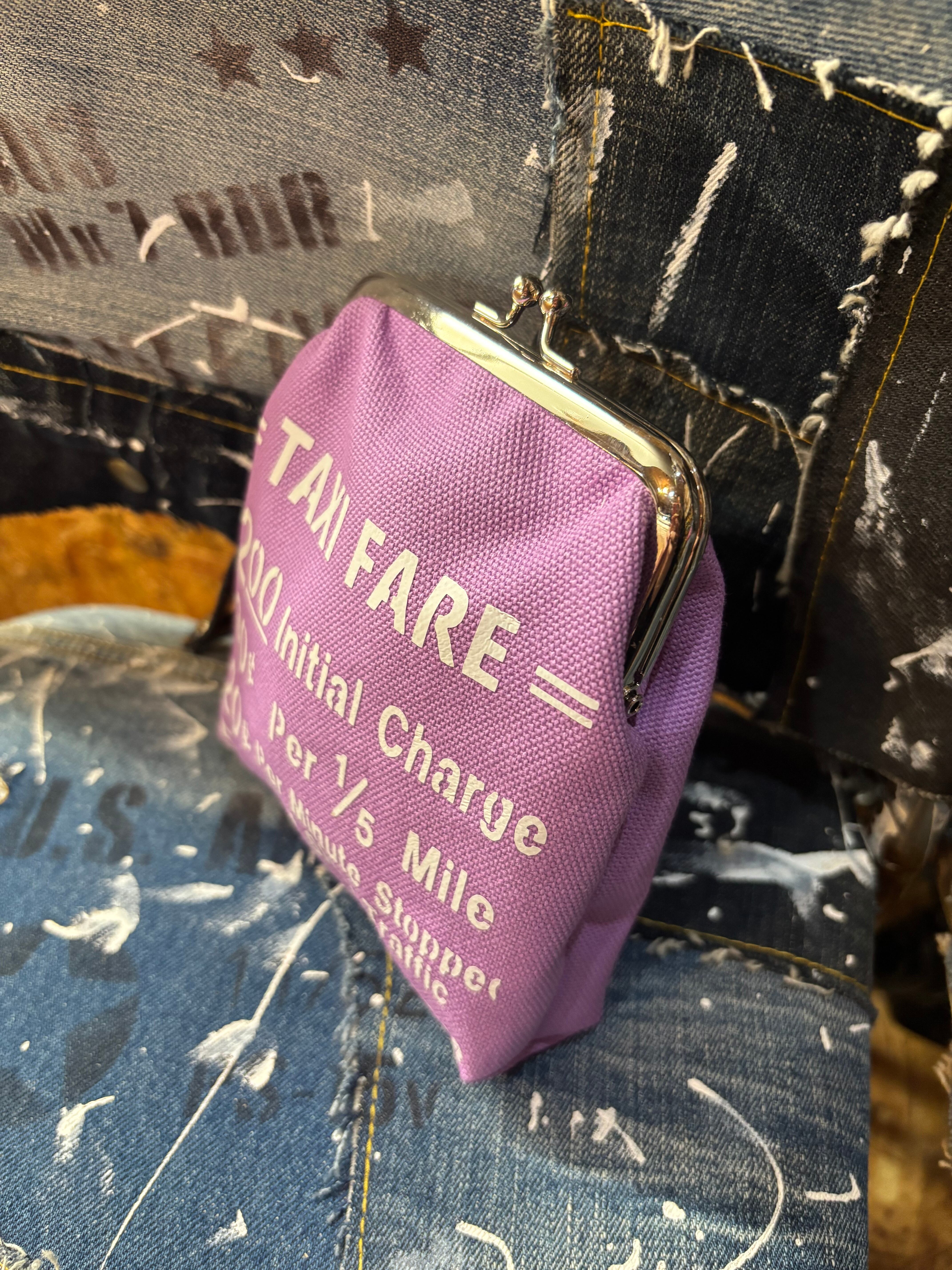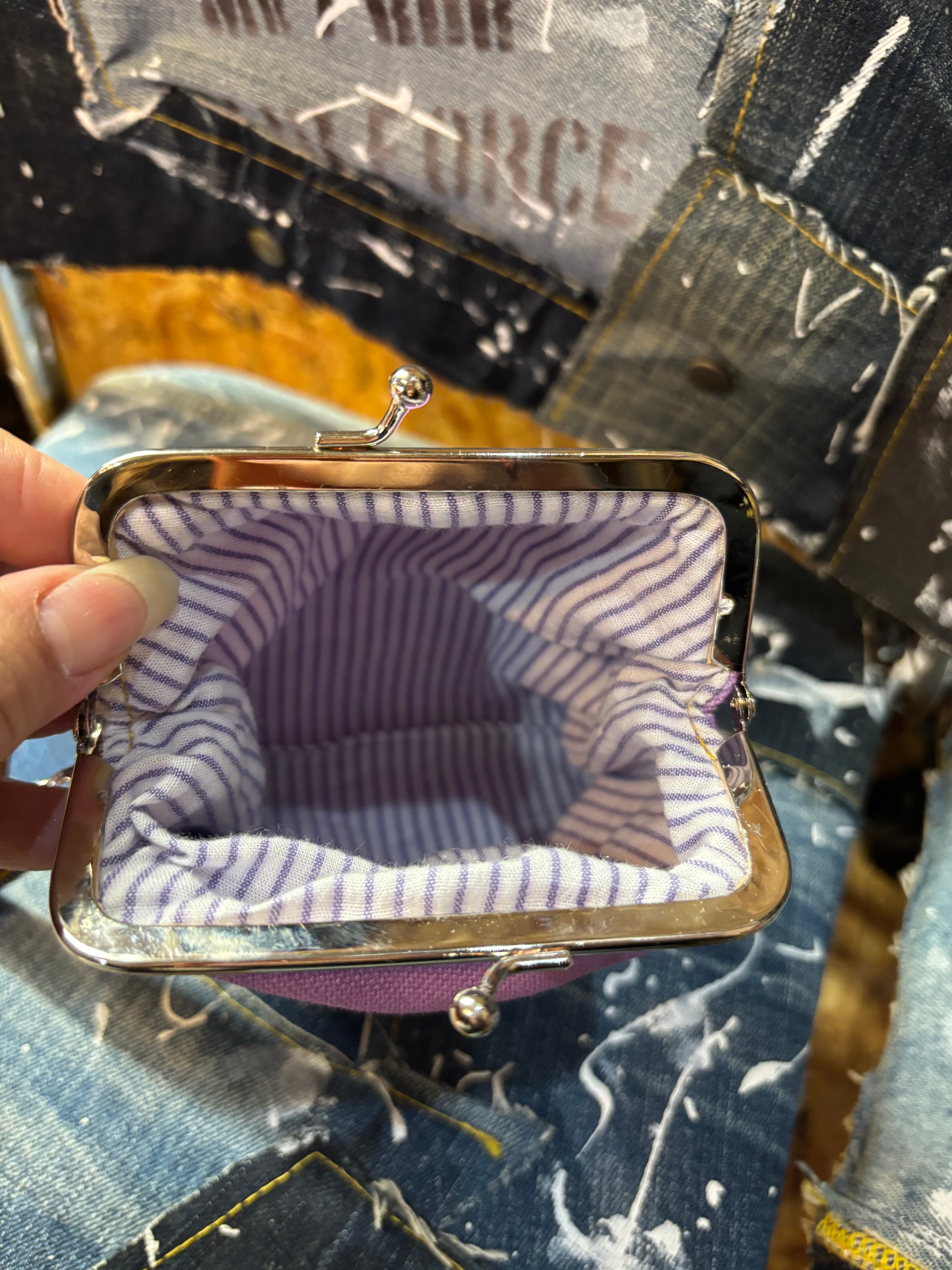 帆布がま口ポーチ 縦長 デニムキーホルダー付き