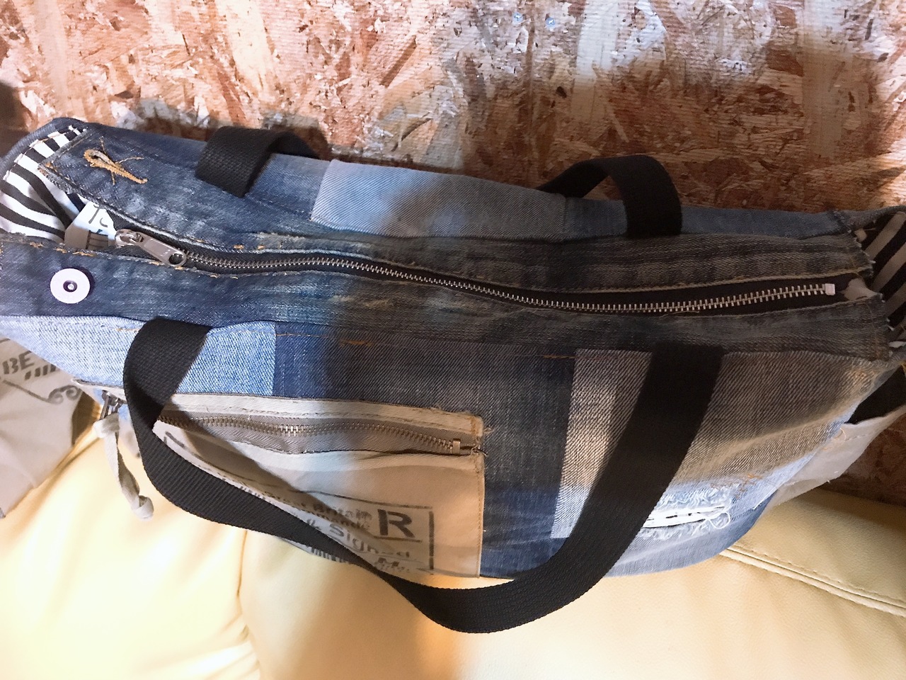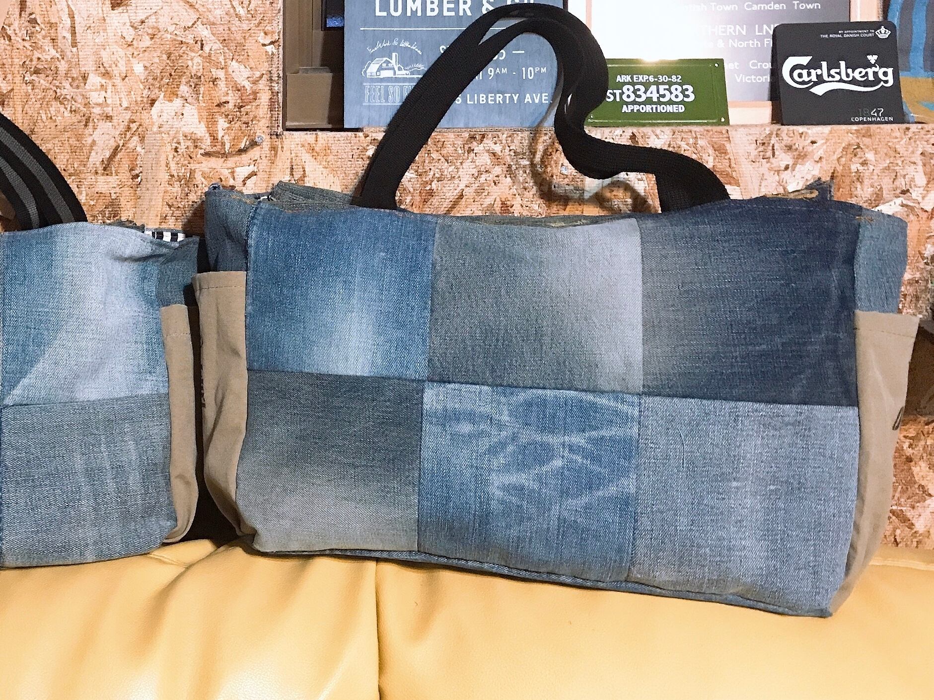 デニムのパッチワークにしてみました。