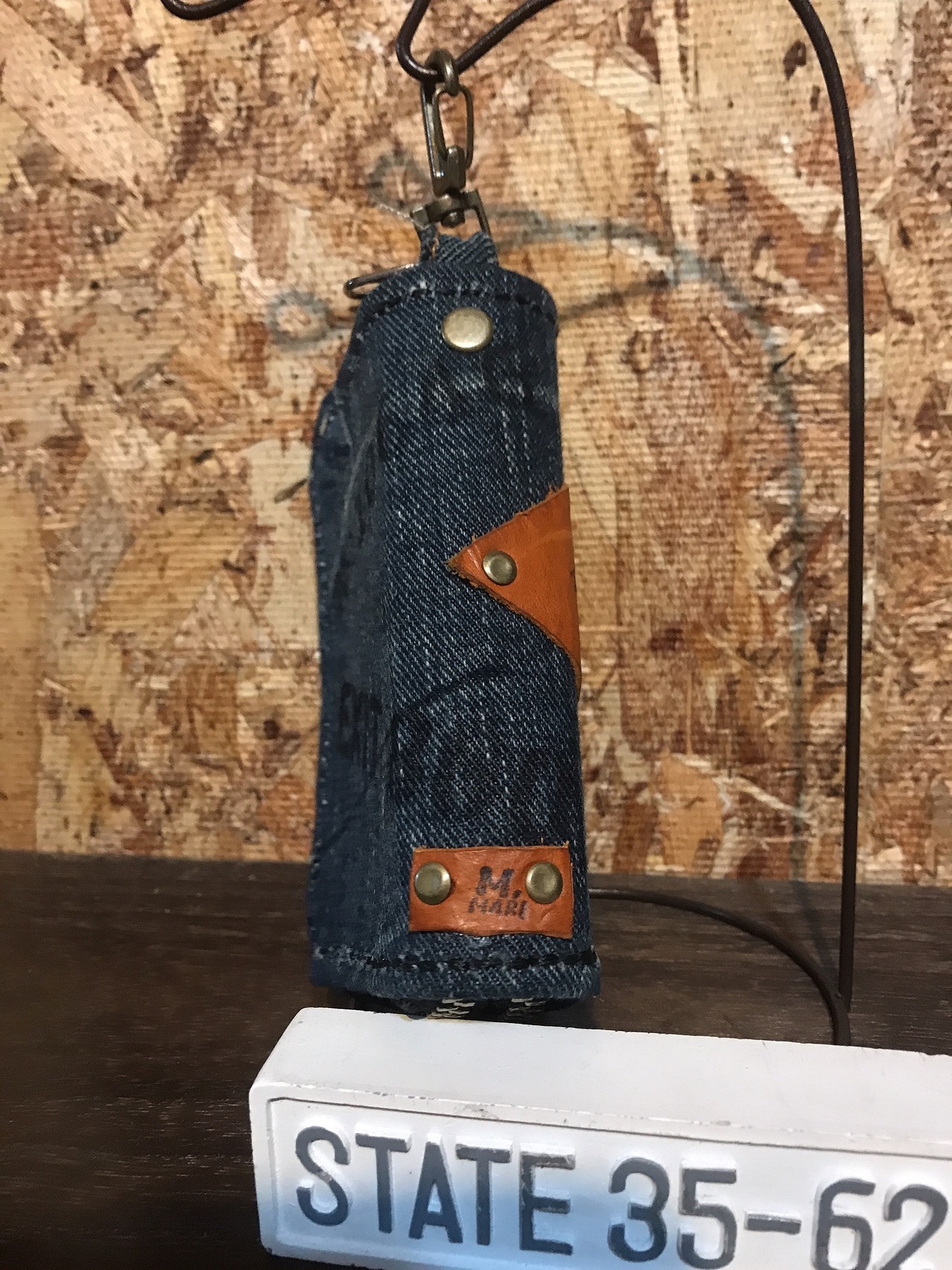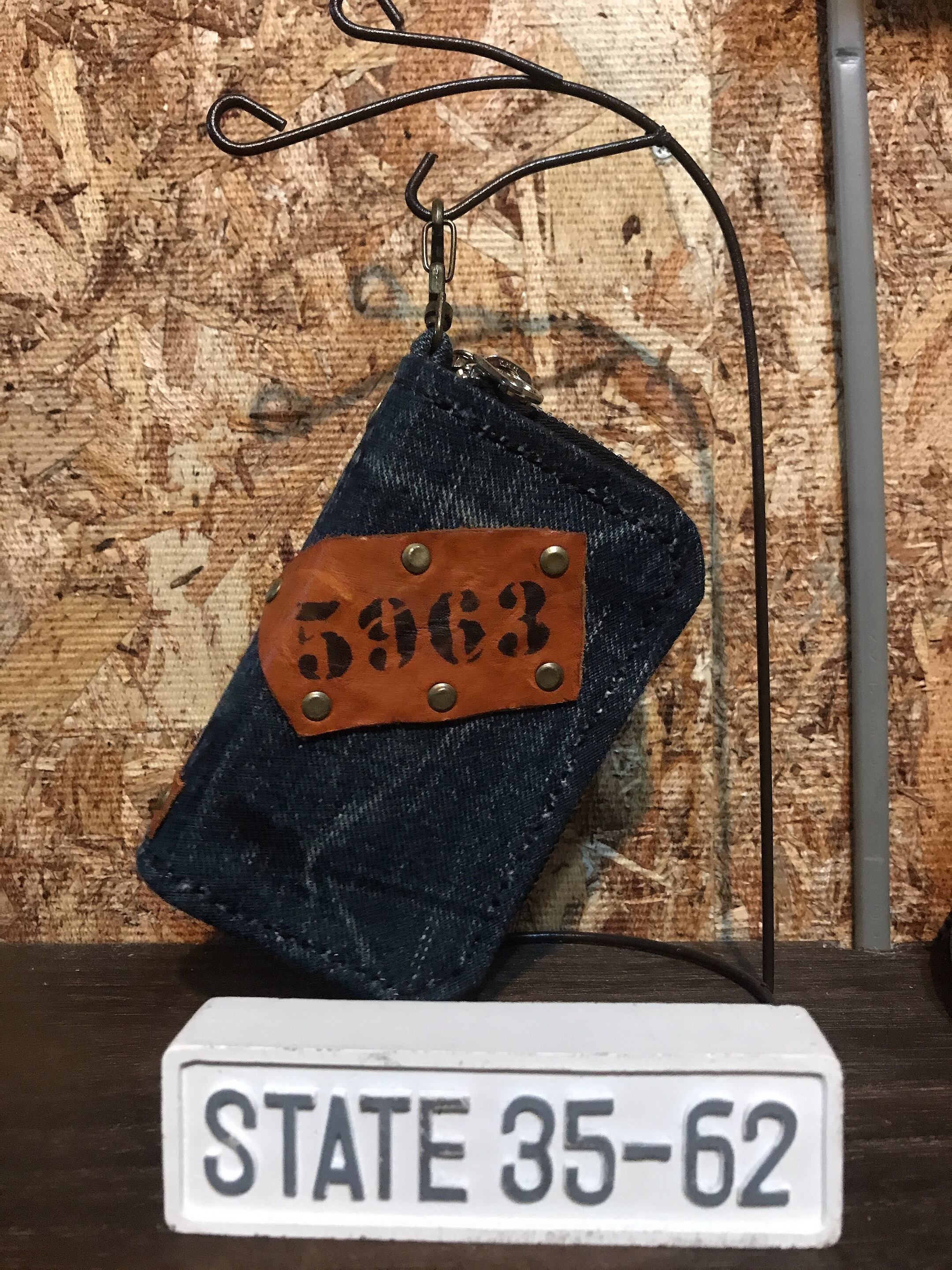 革のハギレを使ったり、わざと革の端っこの方を使ったりしていますので、汚れ傷なども、ございます。わざと汚したデェザインにしてる物もございます。デニムは、全て中古のデニムを使っていますので、全く同じ物はお作りできません。