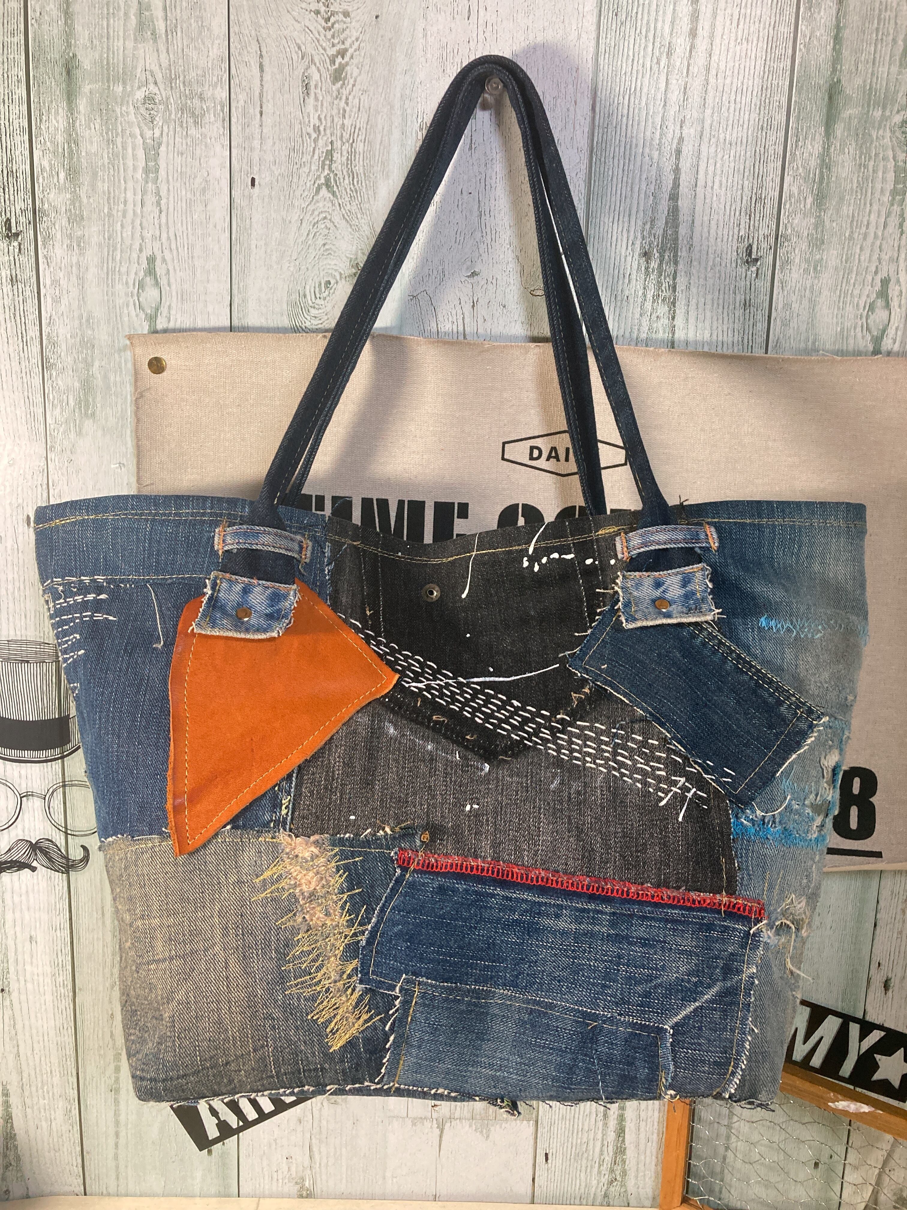 デニムの大きめトートバッグになります。