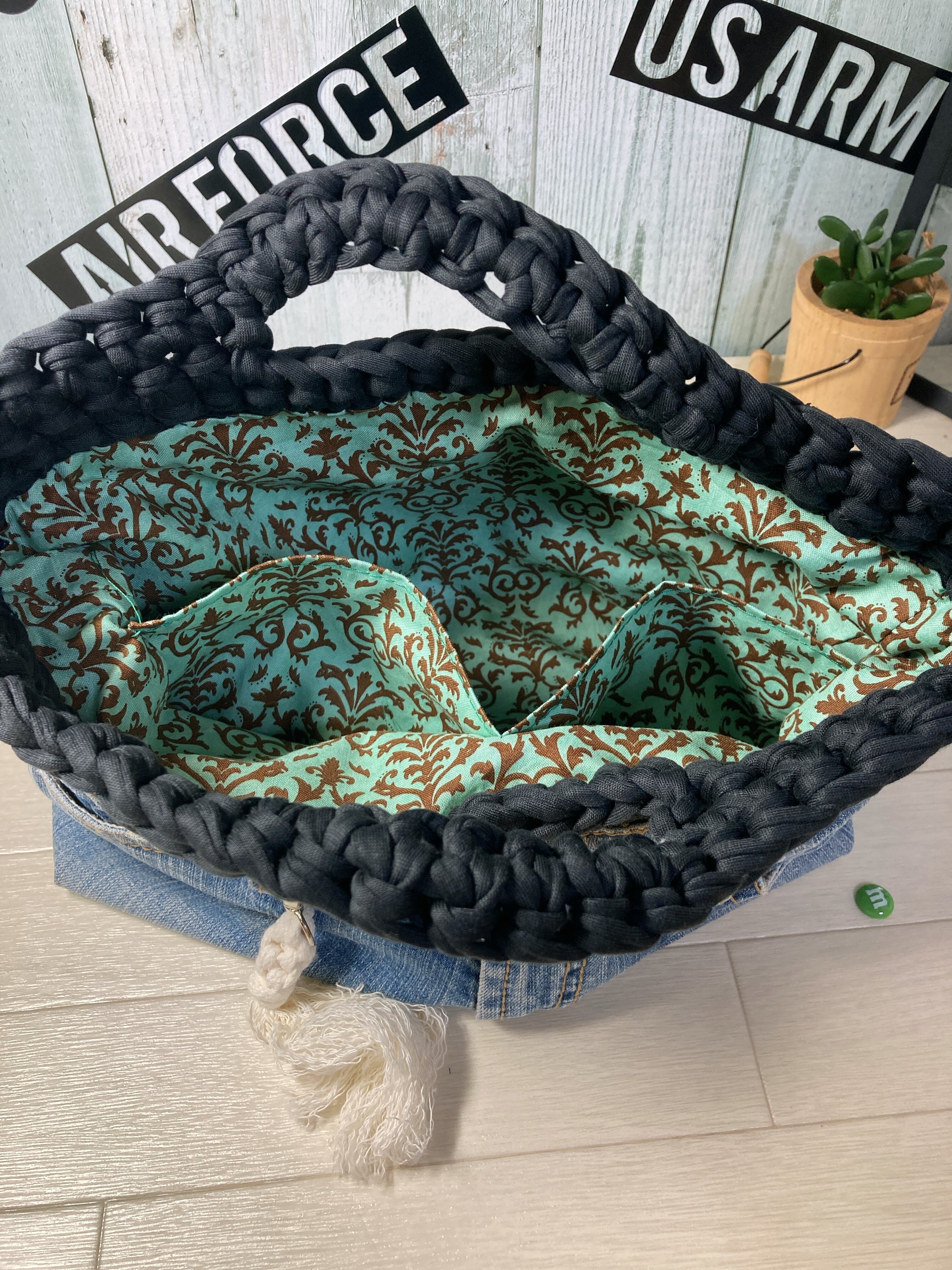 持ち手は、ズパゲティーで、編み上げた、持ち手となります。
