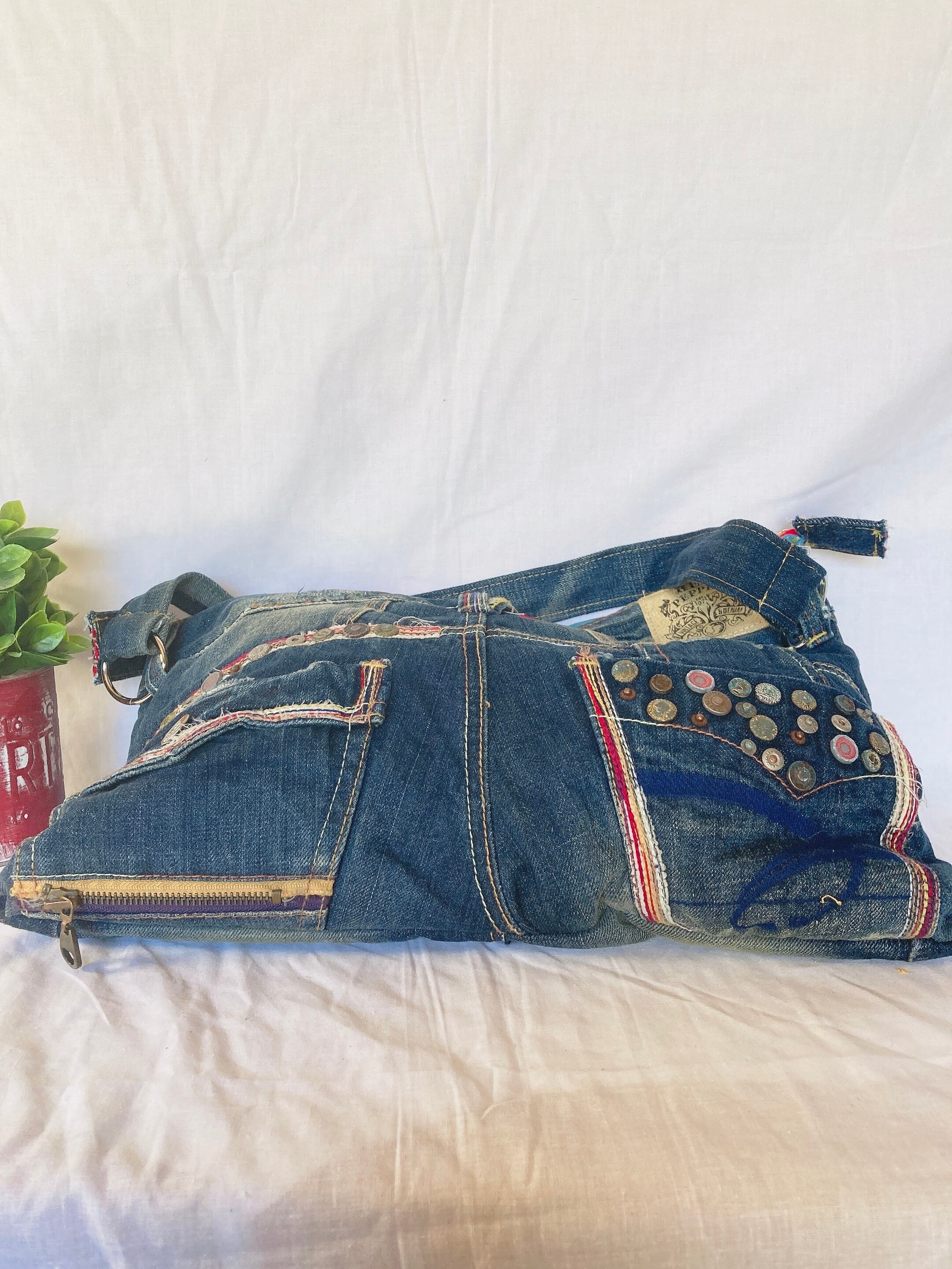 デニムのウエスト部分を使った、トートバックを作りました。