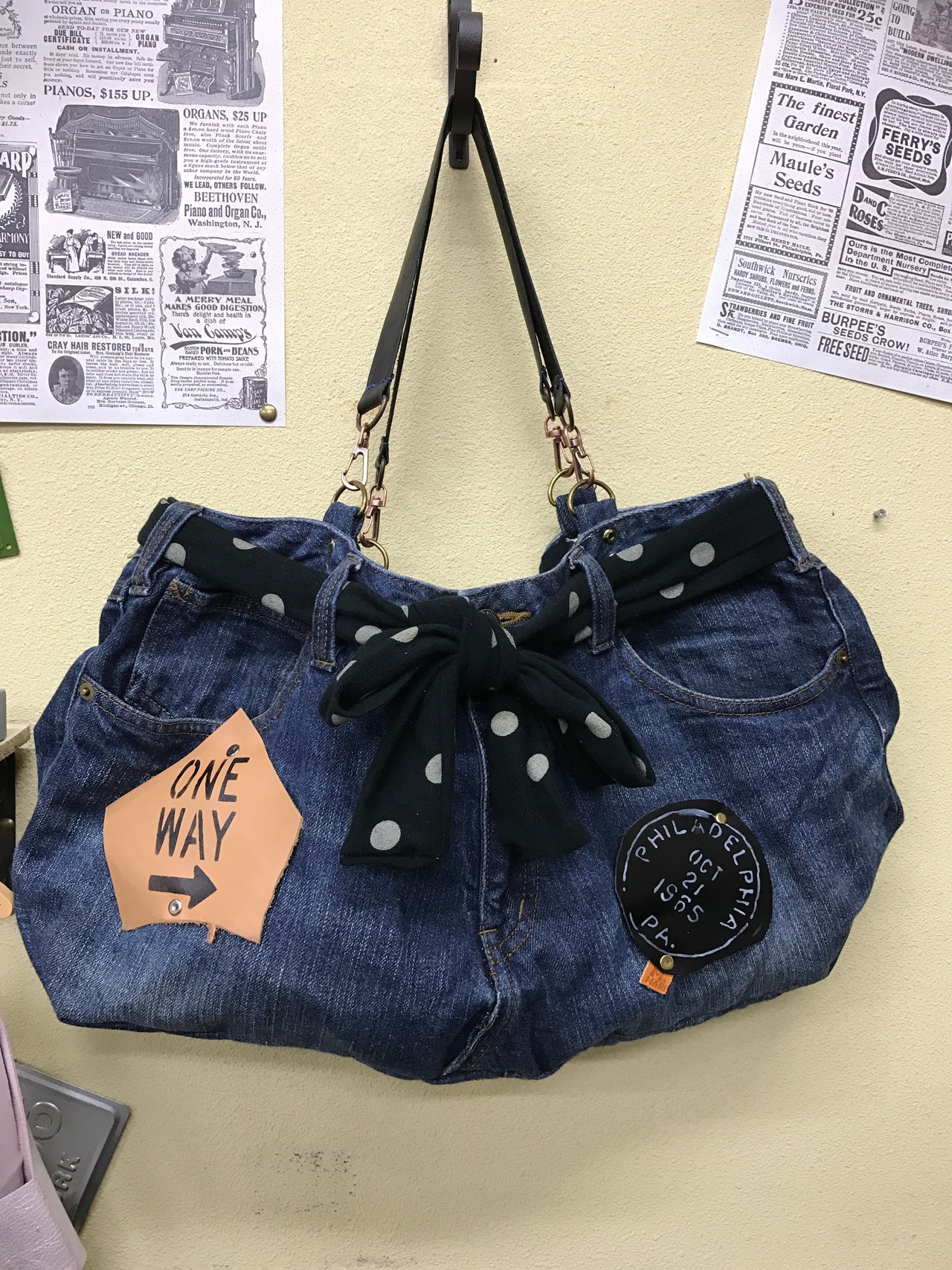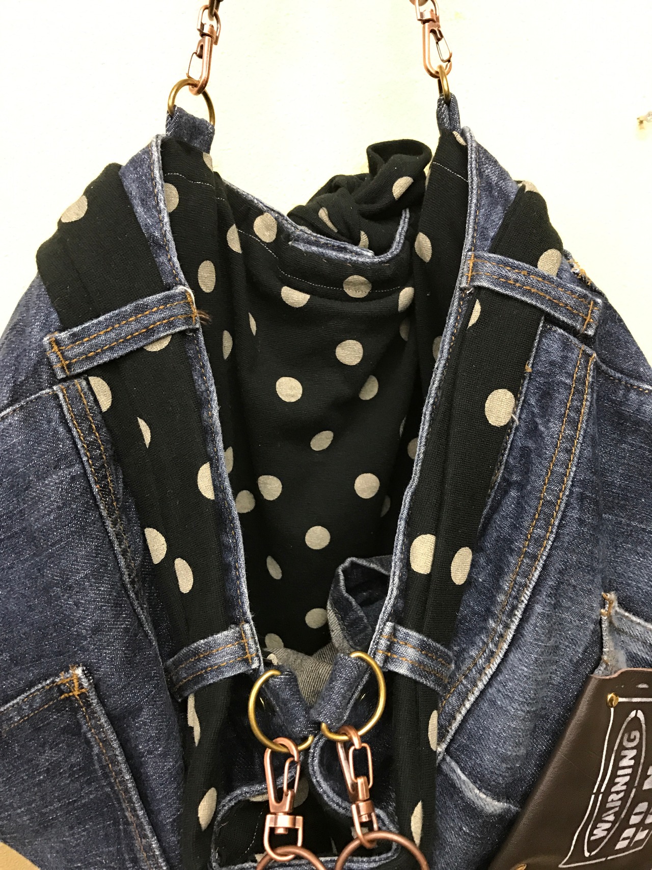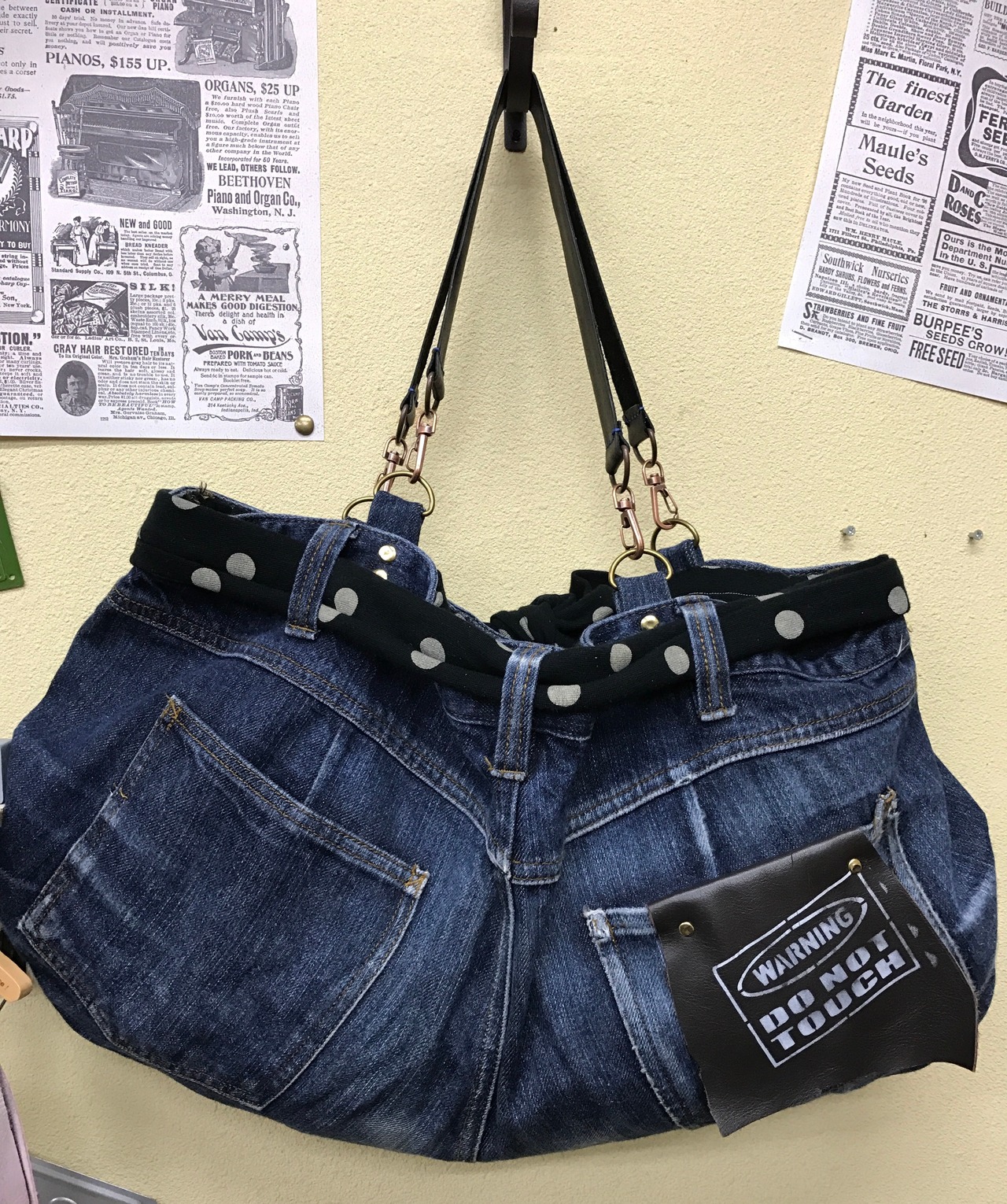 デニムをリメイクしたカバンになります。