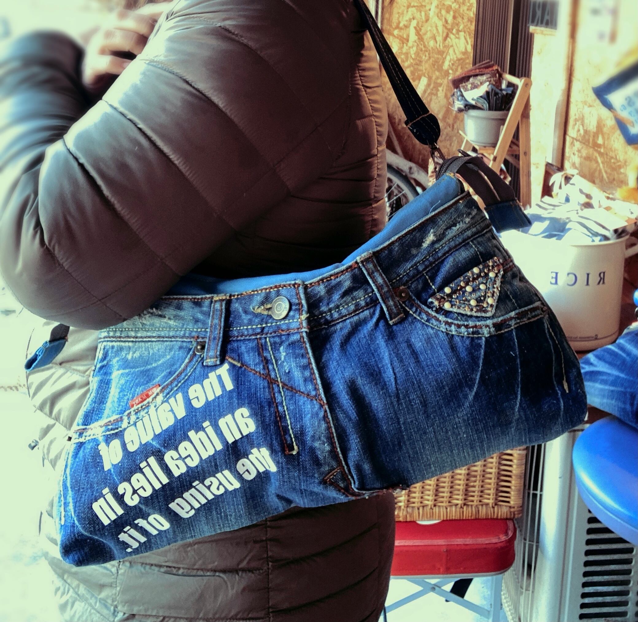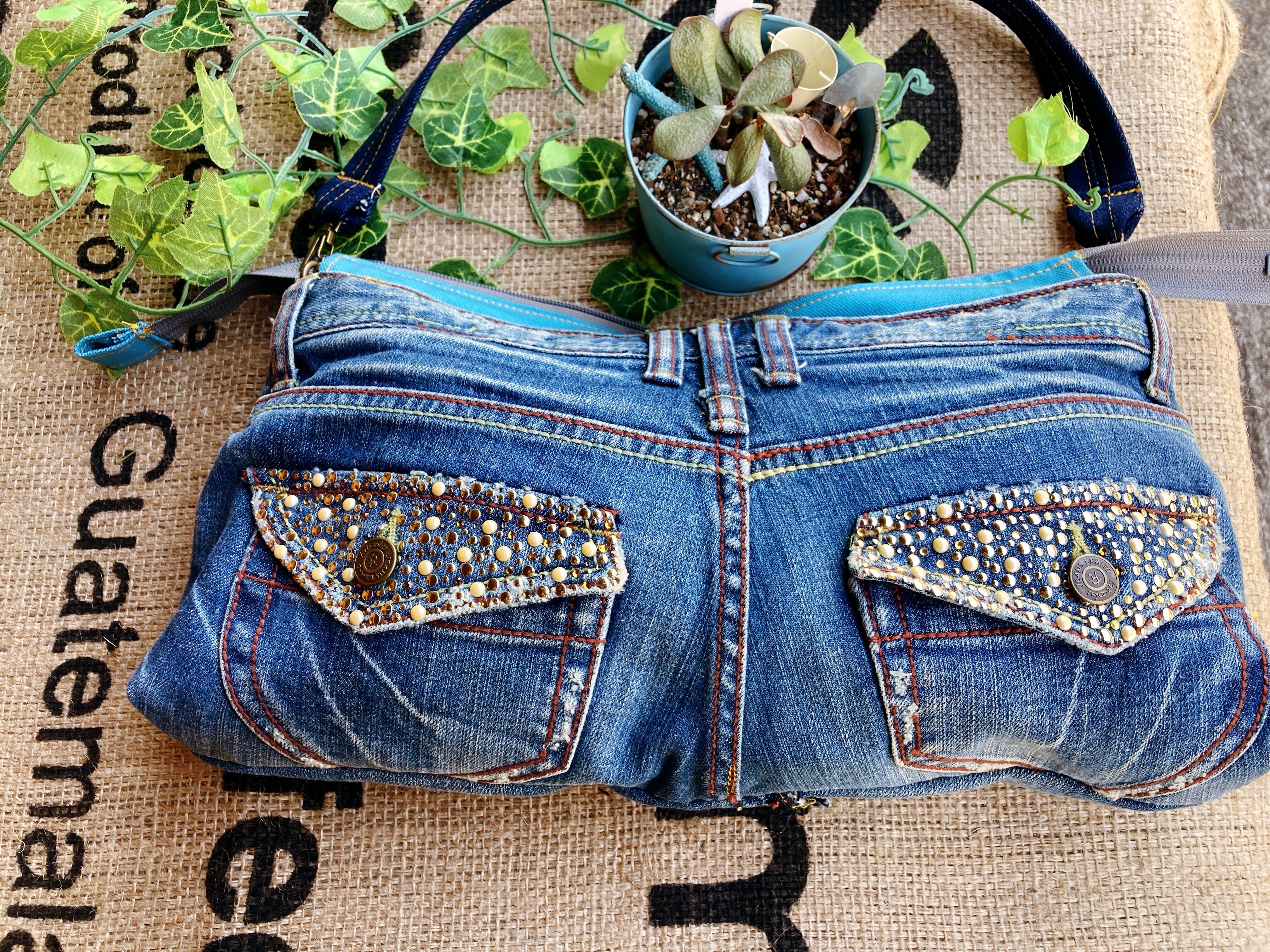 デニムのウエスト部分をそのまま使ってカバンにしました。